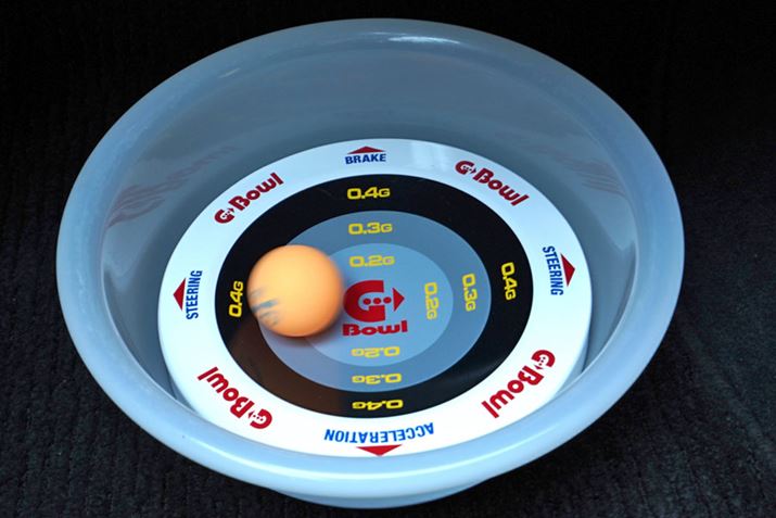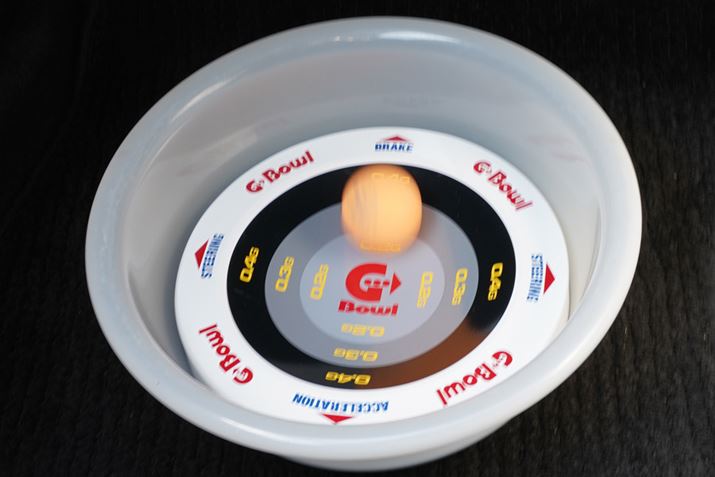 0.4Gを超えるとボールが車内に転がってしまうので、ボールが飛び出さないよう「G-bowl」よりもやや大きめの容器に入れるか、「G-bowl」の縁に紙やテープを巻くなどの工夫が必要となります