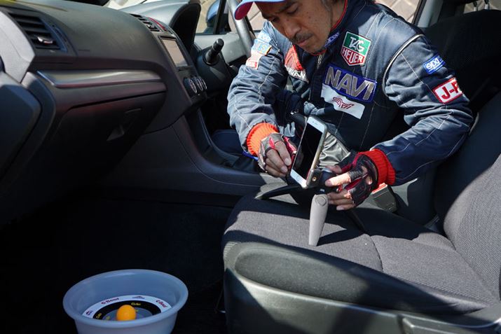 運転中に「G-bowl」に置いたボールを凝視してはいけませんが、洗面器などの「G-bowl」からボールが飛び出すのを防ぐ容器を敷いて使えば、ボールがはみ出すと音でわかるので、目線を移動させることなく使えます。同乗者にチェックしてもらいながら走るか、固定カメラで動画を撮影し、あとでチェックするのもいいでしょう。本品の説明においても、トレイなど下敷きを用意することを推奨しています。