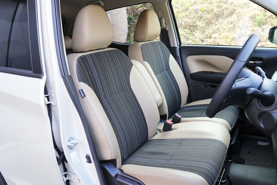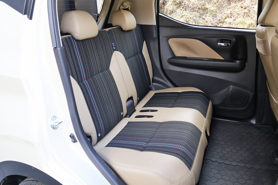 三菱 新型「eKワゴン」「eKクロス」のフロントシートは座り心地が改善されていて、長時間座っていても疲れにくくなった。またリアシートは、膝先空間が70mm拡大して、大人でも余裕で足が組めるほどのスペースが確保されている
