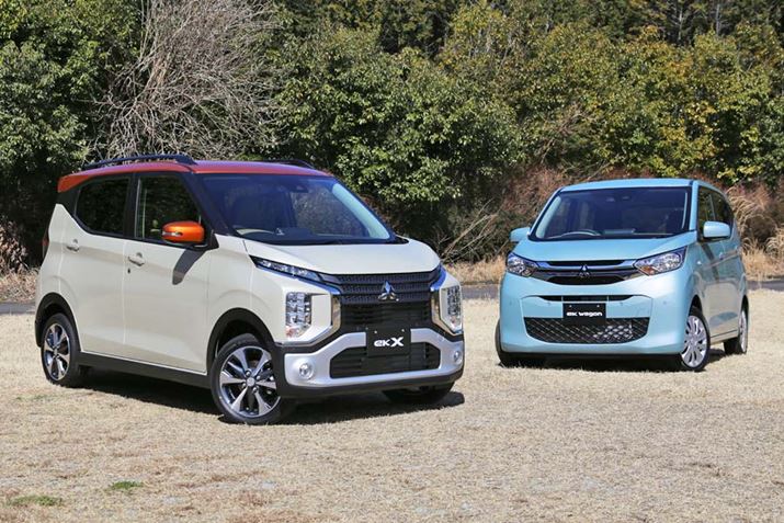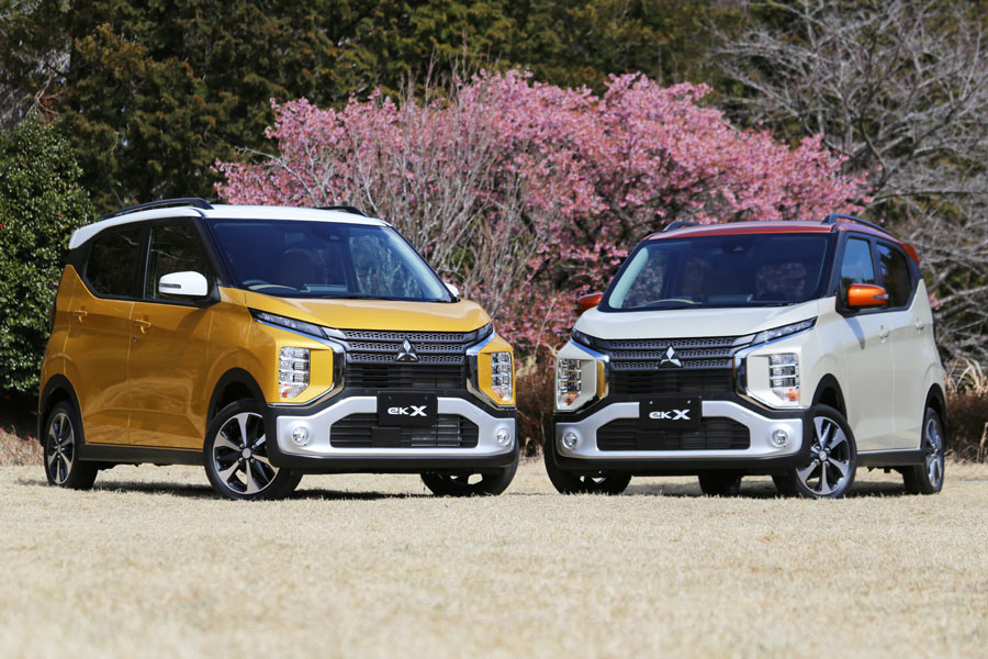フルモデルチェンジされた三菱「eKワゴン」(右)と、今回新たに追加されたカスタムモデルの「eKクロス」(左)