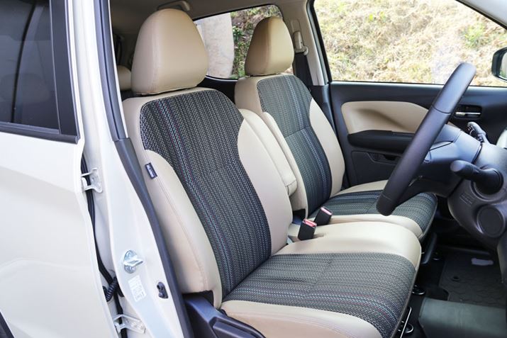 新型eKのインパネは、先代よりも横に伸びやかなデザインになって、室内空間が広くなったような印象をうける。また、インパネには7つもの収納スペースが用意されているのは、軽自動車ならではの使い勝手のよさだ。