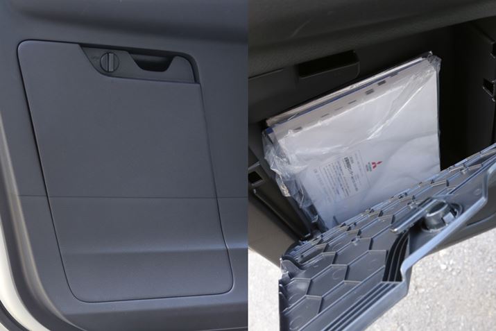 めずらしいのは、助手席側のドアへ新たに車検証やマニュアルなどを入れるスペースが設けられたことだ。これによって、従来のグローブボックスが空くので、そこにもさまざまなものを入れることができるようになっている。