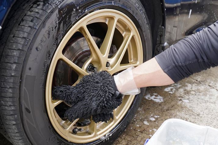 ボディ用のゴリラの手と同様、ホイールの全面を自分の手でなでるようにして洗うことでホイールの状態がよくわかり、愛情が注ぎやすいです。BBSなどの高額な鍛造ホイールは、触るだけで強靭さや剛性感が伝わってくるので、高性能ホイールを買った喜びをあらためて味わうことができました