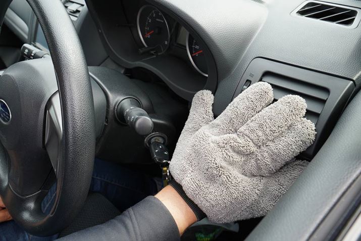 手にはめて、内装をなでまわすようにして掃除します。ホコリが飛散しにくいので、室内に侵入した花粉の除去にもいいでしょう