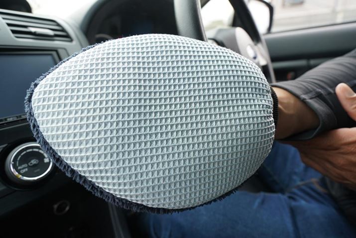車内用グローブ「コアラの手」は、マイクロファイバー素材の中でも「フワフワ」感を高めた仕様になっており、ボディやホイール用と比べると「超極細繊維」であることがわかります。