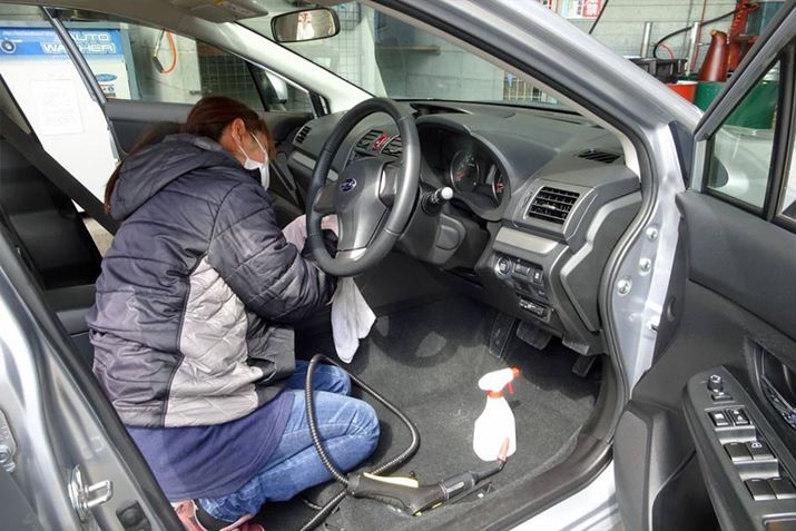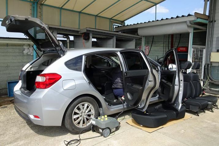 個人的に行きつけの自動車販売店、中津スバルさんでは、仕入れた中古車は軽自動車も含めて全車室内を徹底クリーニング。シートも前後とも外して洗浄・掃除を徹底しています