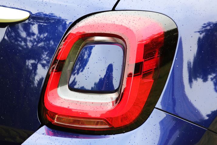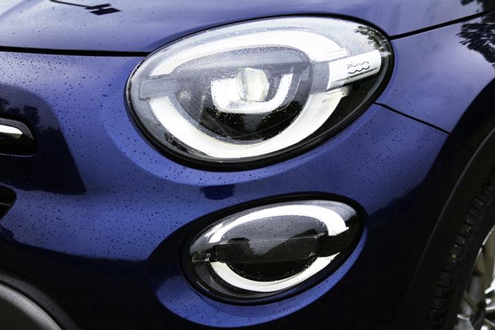 フィアット「500X」のヘッドランプやテールライトは、500のエンブレムをモチーフに上下に分割されたデザインが採用されている