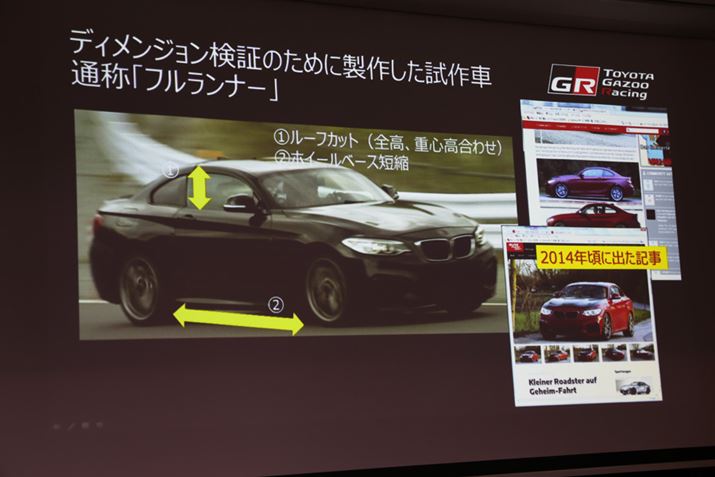 トヨタとBMWにおける次期車のボディサイズ検証の際には、2シリーズ・クーペをベースにホイールベースが縮められ、ルーフカットされた試作車が用いられた。社内では、通称「フルランナー」と呼ばれていたと言う