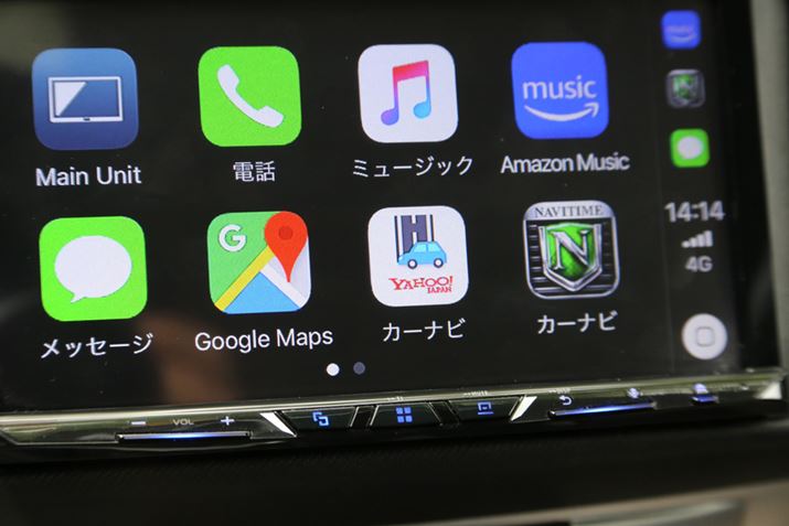 画面に表示されるアプリの配置は、好みに応じてカスタマイズが可能だ。輸入車などではおなじみのCarPlayの画面が愛車でも表示されるというのは、筆者としてはちょっとした“感動”である。