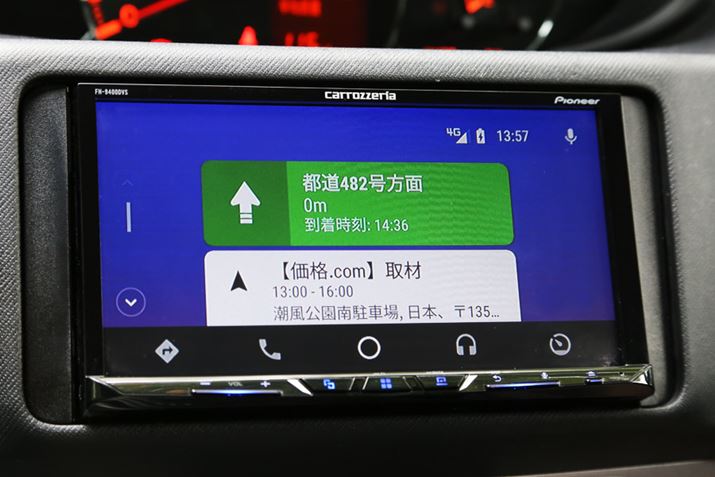 FH-9400DVSを購入しようと考えながらも、どうしても“二の足”を踏んでしまうのが、CarPlayとAndroid Autoのカーナビアプリとしての性能だ。当時のCarPlayのカーナビアプリは情報精度が低く、カーナビとしてはあまりにも「普通」であった。いっぽう、Android Autoは「Google Map」を使うことでCarPlayよりはるかに実用性が高かった。
