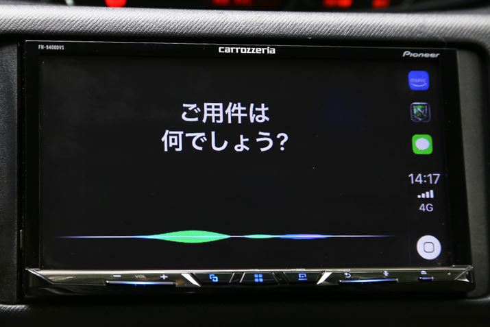 筆者の「iPhone 7」を、Lightningケーブルを使ってFH-9400DVSと接続してみると、CarPlayの画面が表示される。