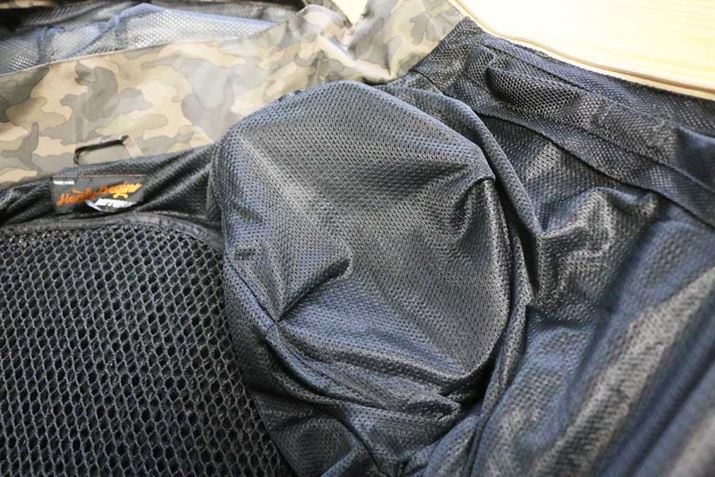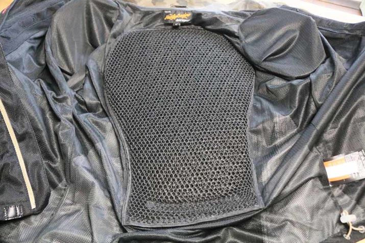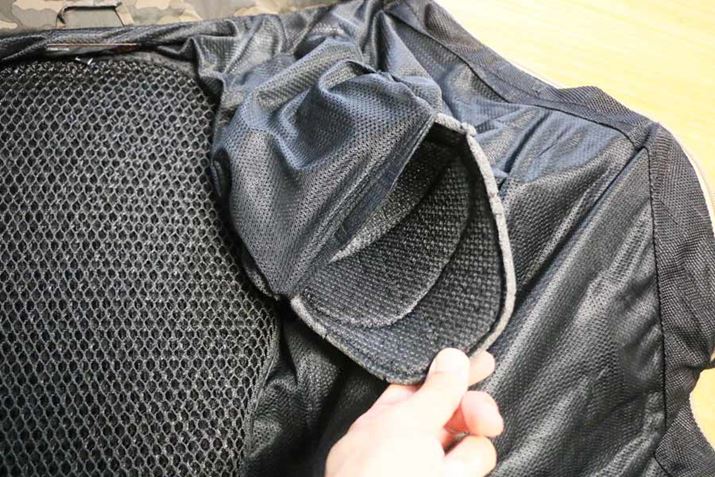 夏向けモデルに標準装備されていることが多いメッシュタイプのプロテクター。全体がメッシュなので通気性はいいが、ガード力はそれなり