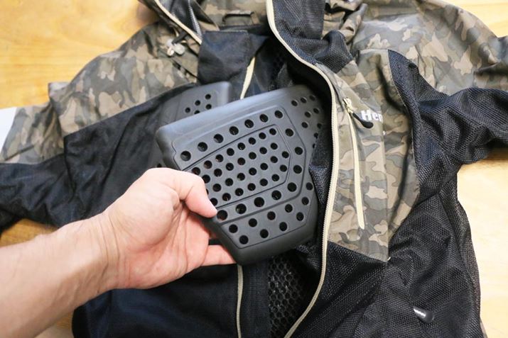 標準装備されていることは少ないが、胸部プロテクターも装着できるモデルが近年急増。写真はポケットに収める仕様だが、ベルクロやスナップで装着するものもある