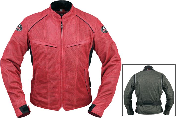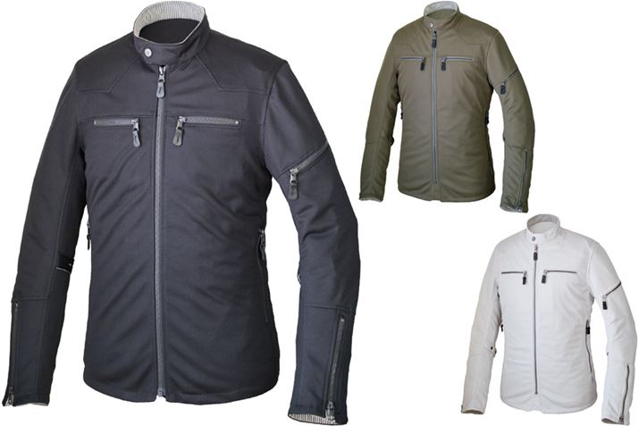 シンプルなデザインが好みなら本製品のほうがいいかもしれない。素材やプロテクション機能は前述のモデルと同じ、だが、大人っぽい雰囲気に仕上がってる。単色に見えるデザインだが、同系色のスラブ調プリントを施し、生地に表情を持たせているのもポイントだ。肩の動かしやすさを重視し、肩部分に伸縮性の高い素材も採用しているほか、ラグラン袖となっているため、ややバイク乗りっぽい感じではあるが、背面に装備されたウエストベルトで腰まわりを絞れば、スリムなシルエットに。少しお腹まわりが気になっているライダーには、「FULL MESH JACKET」のような仕様のほうが、むしろありがたいかも!?