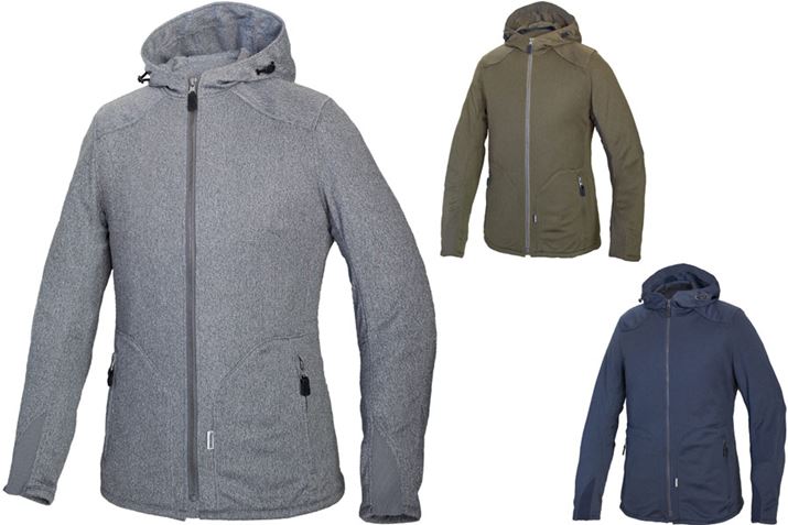 ここまで紹介してきたウェアに比べ、ライダーっぽさがもっともないのは本製品ではないだろうか。フードも付いており、まさに、普通に街中でパーカーといった感じだ。しかし、ライディングウェアを作り続けているパワーエイジらしく、バイクウェアとしての機能性も上々。高いストレッチ性を備える生地を立体断裁構造で仕上げることにより、前傾姿勢でもストレスが少ない。フードはバタつかないように固定でき、肩、肘、背中にはプロテクターを装備。裏地をなくし、徹底的に軽さを追求しているので、肌寒くなった季節には、ジャケットの下に着るインナープロテクターとして使える。