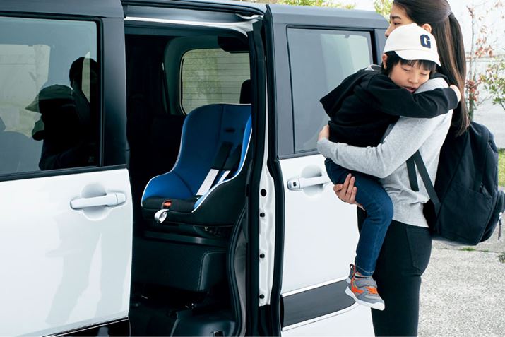 前述の、Bピラーがなくなることで助手席側が大きく開く「ミラクルオープンドア」は、新型タントにも引き続き採用されている。