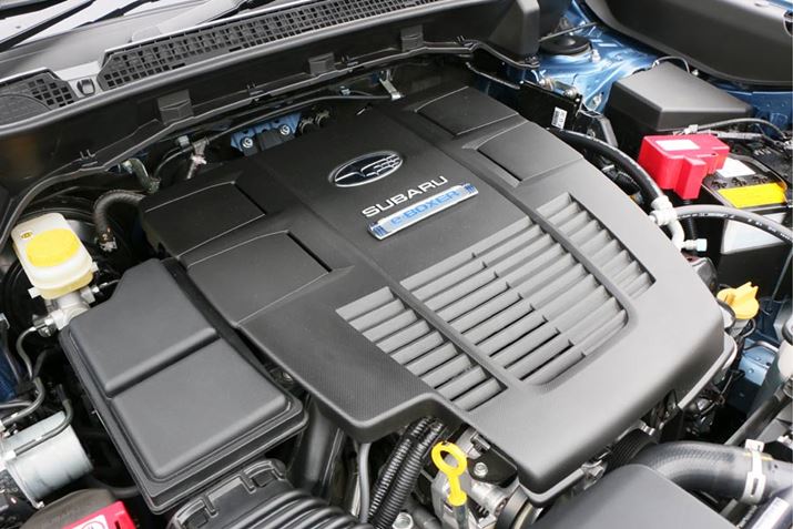 スバルが得意とする水平対向型の4気筒エンジン。2.5Lのガソリンエンジンと、2.0Lのエンジンにモーターを組み合わせたマイルドハイブリッドの「e-Boxer」が存在する