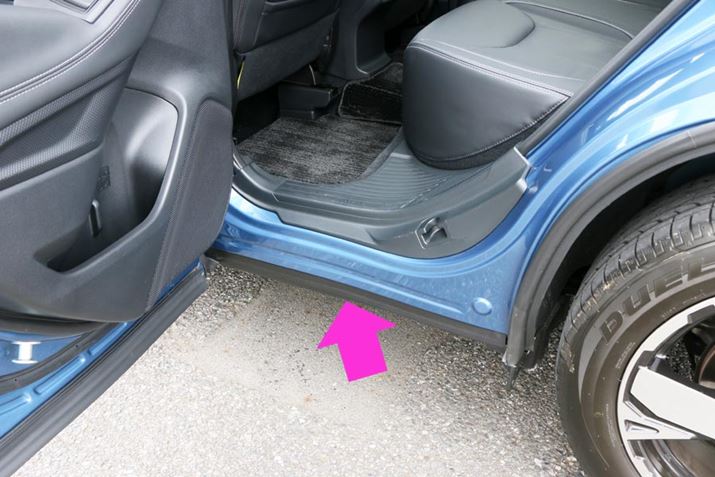 ステップ下部が汚れてしまうと、自動車に乗り込む際に靴や服が汚れてしまうこともある。フォレスターの場合、ステップは汚れない代わりにガードするドアの外側に汚れが付くので、衣服などが汚れにくい