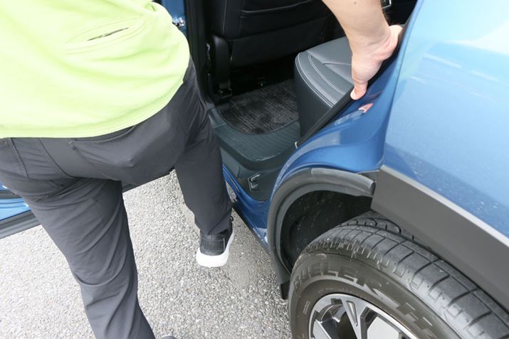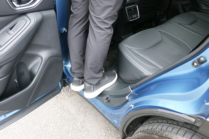 普通の自動車でぬかるんだ道を走った場合、ステップの下のほうに泥などの汚れが付く。フォレスターはドアを閉めるとこの部分がドアでおおわれる設計となっているため、汚れが付かないのもポイントだ