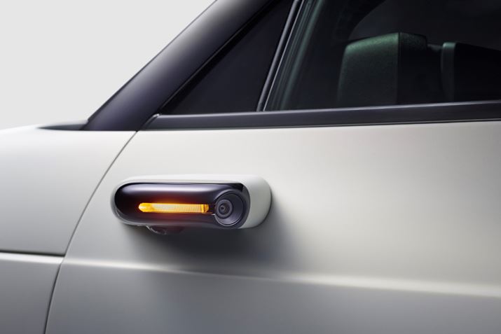 「Honda e」の液晶ミラーは、細長い独特な形状となっている。写真はプロトタイプなので、市販モデルの公開でどのような形状になるのかにも注目したい