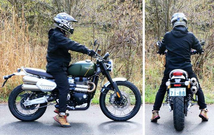 舗装路も未舗装路も難なく走れるスクランブラー1200 XCの実力を試すべく、まずは街中から高速道路までオンロードを走行してみることにした。近年のオフロード車はタンクが短く、ライターが前に座るポジションとなることが多いのに対し、スクランブラー1200 XCのタンクは比較的長さがある。車重が225kgあり、シート高も840mmと高めなので、これらが乗り味にどのような影響をおよぼすのが気になるところだ。