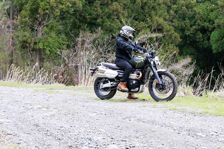 オフロードでの走行性能は、サスペンションが長いスクランブラー1200 XEのほうが高いのは間違いないだろうが、今回は、スクランブラーというマシン本来の特性を考慮し、オンロードとオフロードのどちらの走行もバランスが取れていると思われるスクランブラー1200 XCに試乗してみることにした。