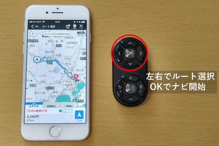 しかし、本製品を使うのであれば、スマートフォンのYahoo!カーナビを起動させるだけでOK。リモコンから音声検索機能で目的地を選び、「OK」ボタンを何度か押せばナビが始まります。