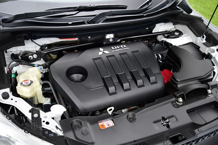 搭載エンジンは、2.2Lコモンレール式クリーンディーゼル直噴ターボエンジンで、2019年2月15日に発売された新型「デリカD:5」と同じエンジンが搭載されている。エクリプスクロスの1.5Lガソリン直噴ターボエンジンとの比較では、低速域からレスポンスよく立ち上がるトルクが特徴的なガソリンエンジンに対して、ディーゼルエンジンでは約1.6倍ものトルクを発生。ディーゼルエンジンは、低回転からの豊かなトルク特性が特徴で、走り出しや追い越しなどでもストレスフリーな加速が得られるなど、ディーゼルエンジンならではの走りが味わえる。
