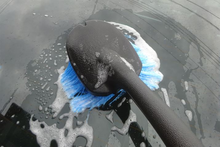 猛暑でのクルマの汚れは放置するとこびりついてしまうので、こういったブラシなどでマメな洗車を心がけましょう。