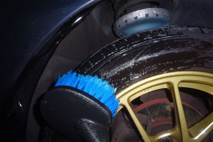 使ってみると、クルマのホイールハウス内に難なく挿入でき、裏側にこびりついた泥汚れをしっかり落とすことができました。ついでにタイヤやホイールも洗浄。タイヤのサイド部分を洗うのにはベストな感じです。ホイールについては、スポーク部分など細かいところまでは届きませんが、先割れPPブラシはやわらかいので安心してゴシゴシできます。