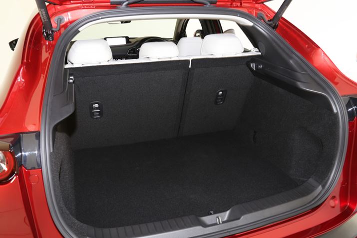 ライバル車と比べて、ラゲッジルームの容量が大きく電動テールゲートが備えられていることは、CX-30の特徴のひとつだ