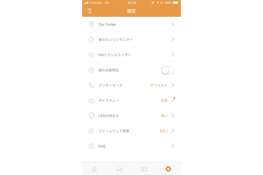 Roav FM Transmitter F3のすべての機能を使うには、スマホアプリ「Roav Charger」をインストールしよう。デバイス接続や周波数スキャンといった操作ができるだけでなく、駐車位置を記録してくれる「カーファインダー」機能や「エンジンモニター」機能(バッテリーの電圧モニター)が使えるようになるのだ。