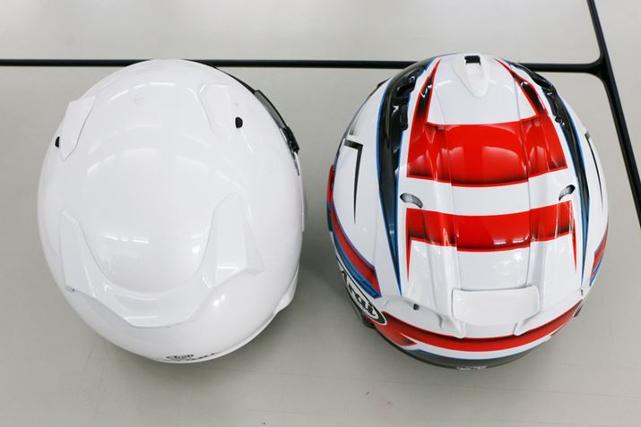 安全性を高めるためには、コストがかかる。たとえば、帽体の素材。通常のグラスファイバーよりも強度が30%高いスーパーファイバーを主素材として使っているが、コストは約6倍かかっているという。さらに、製造は日本国内の自社工場で、仕上げや検査だけでなく製造も職人の手作業による部分が多いなど、品質確保へのこだわりもハンパではないレベルだ。そのため、アライのヘルメットは他メーカー製品より高価なものが多い。フルフェイスヘルメットの価格を見てみると、38,000〜61,000円くらいのラインアップとなっている。価格差は主に、通気性をはじめとする快適性や内装の取り外しができるか否か、サイズの調整可能な部分がどれくらいあるかという点で、衝撃に耐える安全性は、どのグレードであっても違いはない。しかも、世界トップのMotoGPを走るレーサーに提供されているヘルメットも、基本的には市販されているものと同じだという。