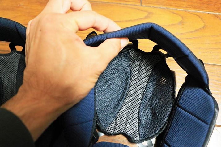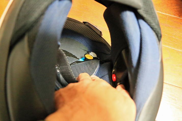 そして、レースだけでなく普段も使うようになってから気付いたことがある。連続して1時間以上かぶり続けると、若干、おでこのあたりが締め付けられるのだ。でも、そんな時はヘルメットの頭まわりを包む部分のシステム内装を交換すればいい。この部分に取り付けられる「RX-7X」のシステム内装は、標準装着されている厚み7mmのもののほか、2mm刻みで厚みの異なるものがラインアップされている。交換することで、フィット感の微調整が可能だ。