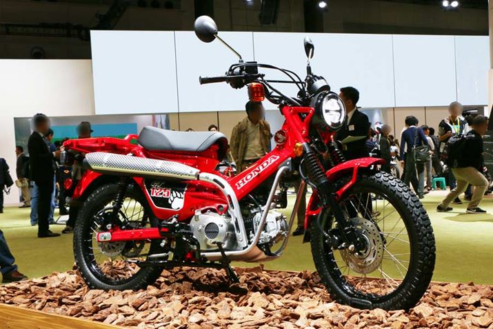 ホンダブースでひときわ高い注目を集めていたのは、世界初公開となる、「スーパーカブ」シリーズをベースとしたコンセプトモデル「CT125」。排気量(125cc)からすると、ベースとなった車両は「スーパーカブ C125」と思われるが、オフロード向きのタイヤにアップタイプのマフラーが装備されたその姿は、今でもファンの多い「ハンターカブ」と呼ばれた「C110」を思い起こさせる。同シリーズにはハンターカブのテイストを採り入れた「クロスカブ50/110」も存在し、林道を走れる性能を有しているものの、マフラーがダウンタイプなため、サードパーティー製のアップタイプに交換するユーザーも多い。その点、C125が備えているマフラーはアップタイプ。さらに、エンジンが岩などにぶつからないようにガードが装備されていたり、タイヤとフェンダーのクリアランスを大きく取ることで泥詰まりを起こりにくくしていたりと、本格的なオフロードを走れそうな造形が随所に施されている。その完成度はかなりのもので、同会場にいた筆者知人にも「このまま発売されるなら買う!」と言っている者が複数いたほどだ。ぜひ、このままの姿で販売してもらいたい。