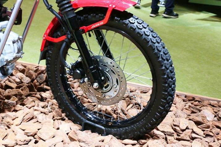 まさにハンターカブの再来と呼べる出で立ち。ステージ上ではなく、誰もが近くで眺められるスペースに展示されており、常に途切れず人だかりができていた