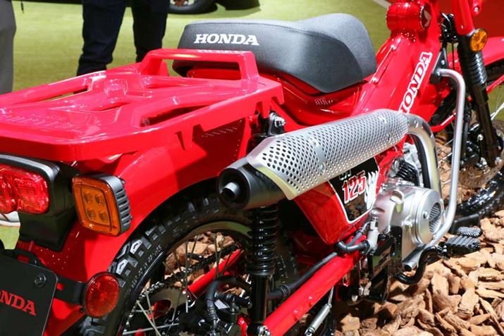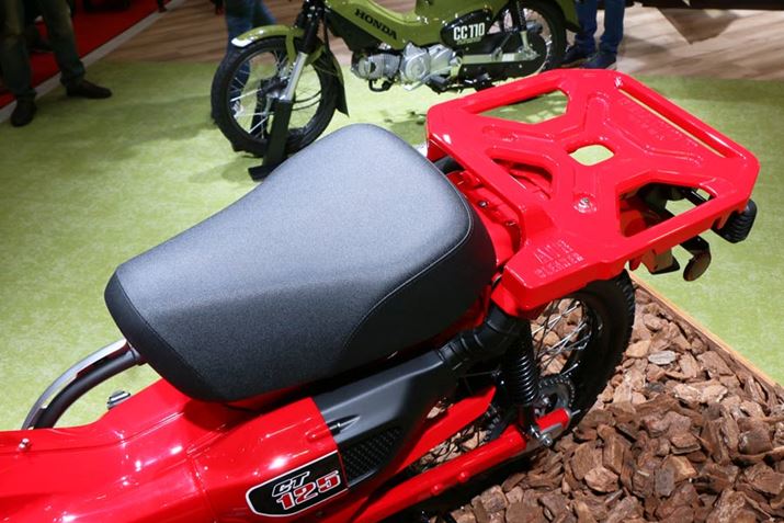 大型のキャリアを装着しているが、よく見ると「AIR CLEANER」の文字が刻まれ、吸気ダクトがつながっている。水の吸い込みなどを抑えるための措置で、かつてのハンターカブも採用していた機構だ