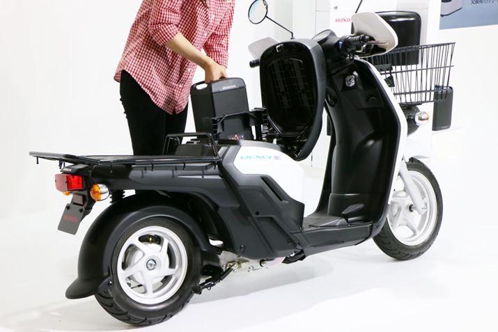 先に紹介した「CT125」のほかにも、世界初公開となる電動バイクが2台ある。2輪の「BENLY e」と3輪の「GYRO e」だ。交換式のバッテリーを採用し、バッテリー充電ステーションで交換すれば、充電時間を気にせずに走行できるコンセプトとなっている。いずれもビジネス向けモデル。