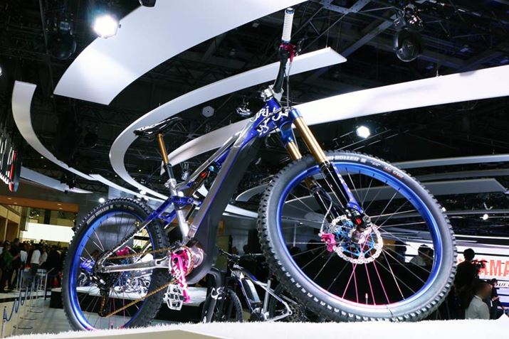 東京モーターショー向けに派手なカラーリングが施された「YPJ-YZ」。このままの姿で販売されることはなさそうだが、完成度は高く、最近の同社の傾向から考えると市販前提だと思われる。2本に分かれたフレームの間にバッテリーを収める構造は、フレームの剛性を高めるのに有効な手段だろう