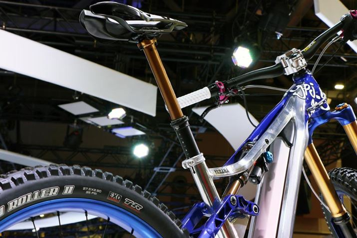 座ったままシート高が変えられるドロッパーポストが装着されていた。昨今のマウンテンバイクでは必須の装備になりつつあるので、ぜひこのまま市販してほしい