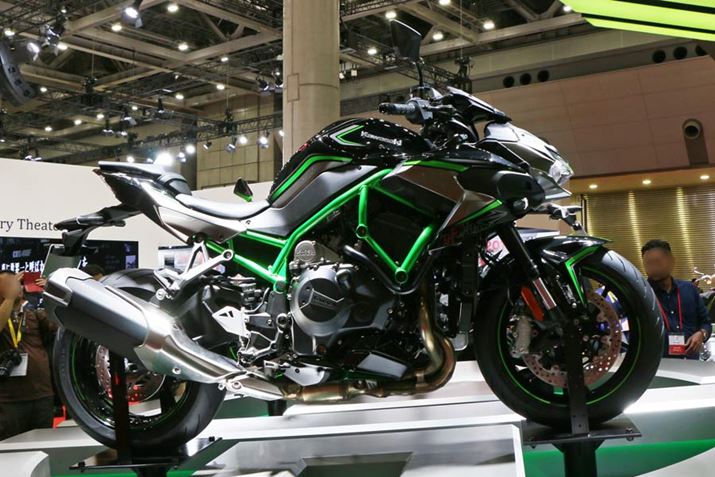 ブースのひときわ高い位置に展示され、海外メディアからも大きな注目を集めていたのが「Z H2」と「Ninja ZX-25R」。「Z H2」は、カワサキが誇るスーパーチャージャー付きのモンスターマシン「Ninja H2」のエンジンを搭載した、初のカウルを持たないネイキッドモデルとなる。最高出力は200PSで、最大トルクは137Nm。車重は239kgと発表されているが、価格や発売日などは未発表だ。
