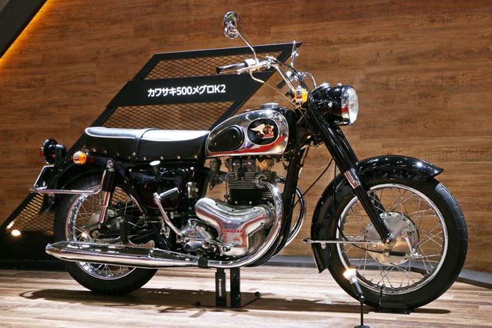 「W800」のルーツのひとつである「カワサキ500メグロK2」。1960年代にカワサキが合併した目黒製作所の名を残したモデルで、469ccの空冷バーチカルツインエンジンを搭載