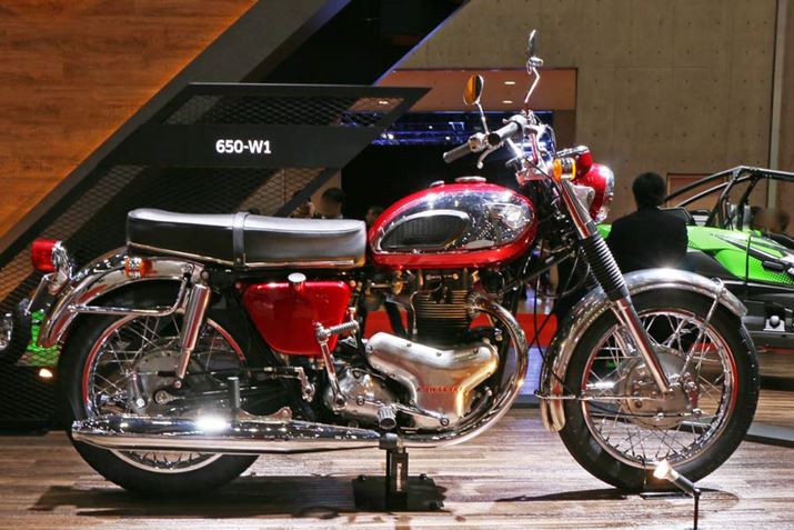 現行「W800」のルーツとなる2モデルが展示されていたので紹介しておこう。1965年式「カワサキ500メグロK2」と1966年発売「650-W1」だ。日本国産のバイクがまだ小排気量車ばかりだった時代に、当時としては大排気量の並列2気筒エンジンを生産していたカワサキの技術力と、現行車に受け継がれるDNAを感じさせる。