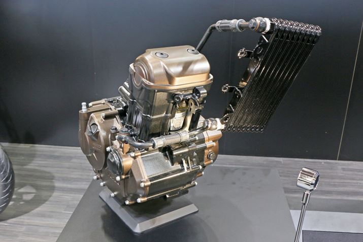 一見すると水冷エンジンかと思ってしまうような新型油冷エンジン