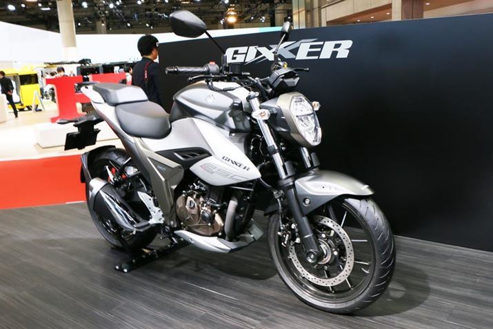 新開発された油冷エンジンを搭載した、250ccクラスのネイキッドモデル「GIXXER」。参考出品車でスペックなどは未発表だが、市販モデルに近い完成度に見える。アップハンドルにスリムな車体の組み合わせが街中でも乗りやすそうだ