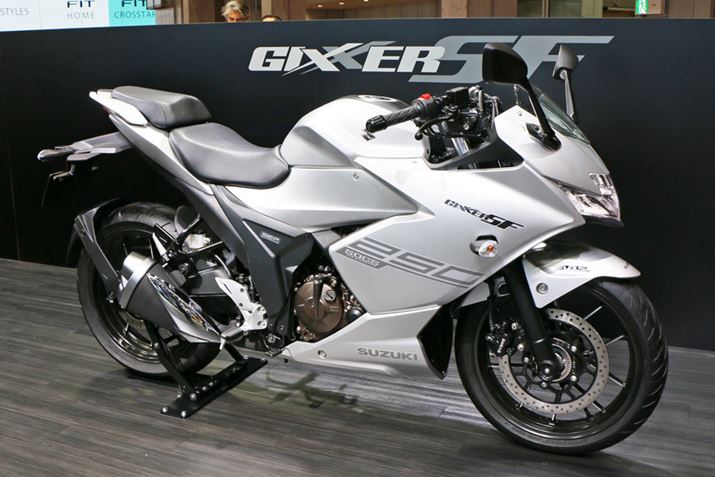 同じく、新型油冷エンジンを搭載したフルカウルモデル「GIXXER SF」。車体やエンジンなどの基本構成はGIXXERと同一だが、かなりスポーティーなルックスとなる