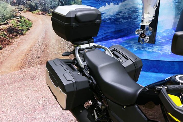 「V‐Strom 250 ABS」にはオプションのパニアケースも装着されており、旅に出かけるイメージがますます高まる