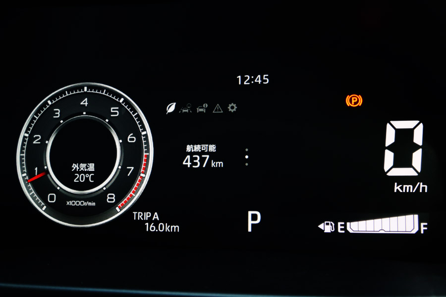 内装にも触れておきたい。インパネは、水平基調のオーソドックスなデザインだが、主力グレードのメーターにはTFTカラー液晶の「アクティブ マルチ インフォメーションメーター」が採用されており、各種の情報を表示することが可能だ。ATレバーは前後方向に直線的に動かすタイプで、エアコンなどのスイッチ類の操作性も良好だ。