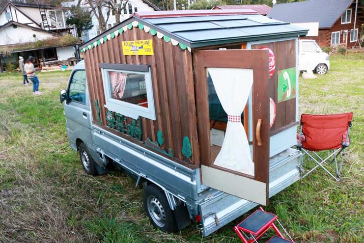 とはいえ、モバイルハウスをいきなり作るのはハードルが高い。市販のモバイルハウスを購入するという方法もあるが、100万円を軽く超えるので気軽にとはいかない。そこで、提案したいのが、レンタルサービス。モバイルハウスを積んだ軽トラを借りて、旅に出かけることができる。今回のイベントで出会った「Mobile house novi」の場合、24時間のレンタルで15,000円(税別)。モバイルハウスに興味がある人は、レンタルから始めてみるといいだろう。