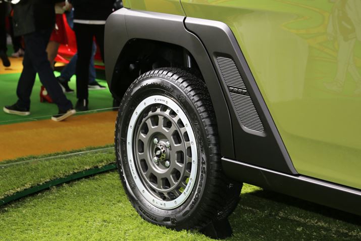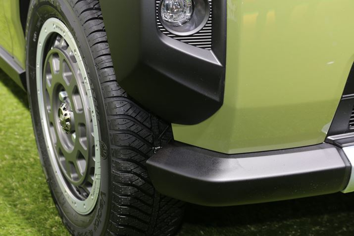 その特徴は、「スクエアなボディです。また、もっとも目に付くバンパーは、両サイドから挟み込むようにして、タイヤを強調しました。これにより、走破性のよさといった印象を与えています」とのこと。